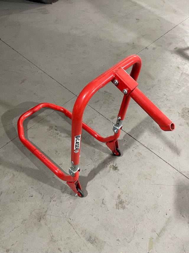 Detalles del productoCaballete delantero para enganchar en la tija de la moto. Está nuevo, solo lo he probado.