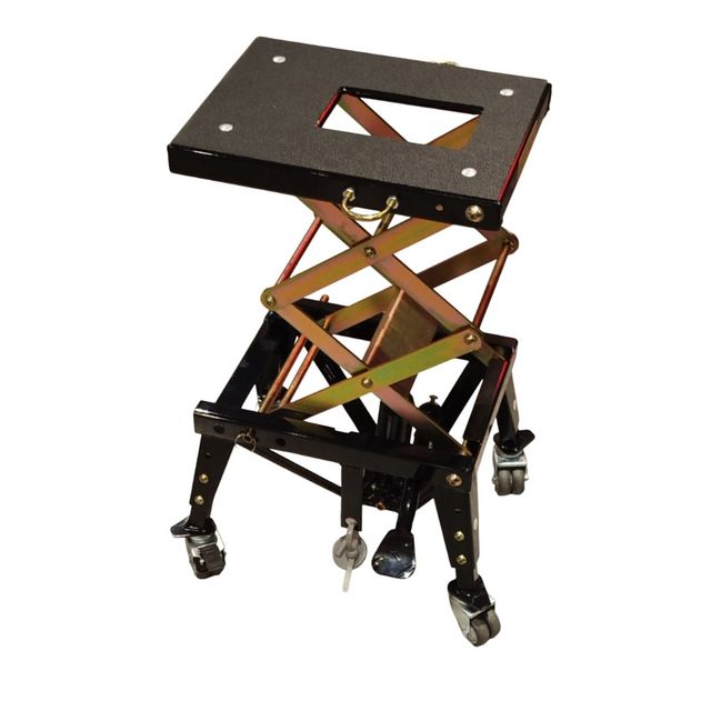 Con una capacidad de carga de hasta 160 kg, este caballete es robusto y seguro, proporcionando estabilidad durante el mantenimiento o las reparaciones. Las ruedas integradas permiten un fácil desplazamiento, lo que lo convierte en una opción práctica y versátil para cualquier taller o garaje.