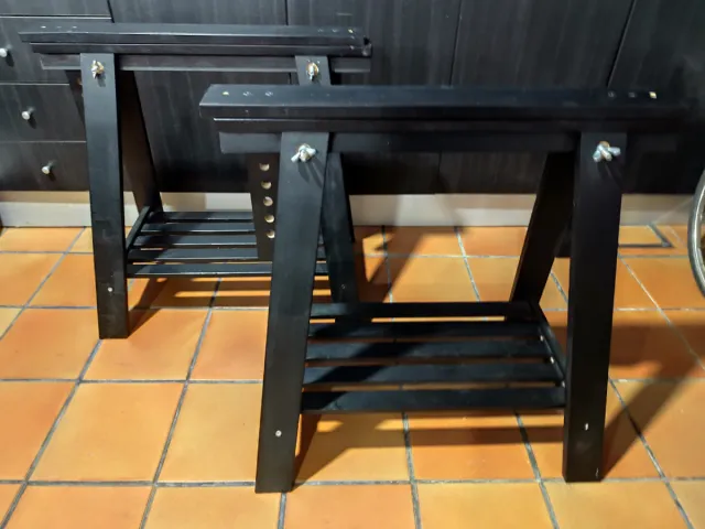 Par de caballetes negros, ideales para tu taller o espacio de trabajo. Son regulables en altura para adaptarse a tus necesidades.
