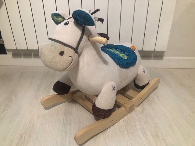 Detalles del productocaballito balancín con mecedora de madera. cuerpo de felpa, suave y blandito. con algunas marcas (ver fotos) se puede lavar el seco. asas de madera laterales. perfecto para que los peques adquieran euilibrio y motricidad global, además de divertirse.