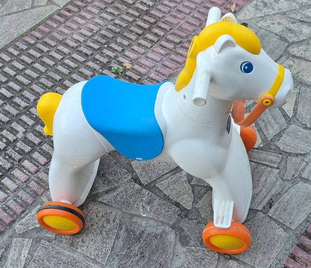 Detalles del productoCaballo balancín de la marca Chicco, ideal para bebés. Es un juguete en buenas condiciones, listo para que tu pequeño disfrute. Tiene patas para balancín y varias posiciones según evoluciona el tamaño del bebé.