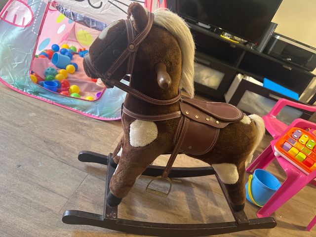 Detalles del productoPrecioso caballo balancín para bebés, en color marrón con lunares blancos. Está en muy buen estado y listo para que tu pequeño disfrute montando.