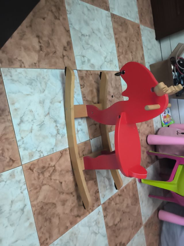 Detalles del productoCaballo balancín para bebés, ideal para que los más pequeños de la casa se diviertan. Es de color rojo y está en buen estado.