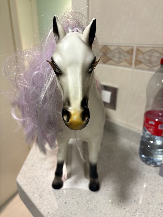 Caballo para muñeca Nancy. - Color blanco. - Melena lila. - Ojos con pestañas.