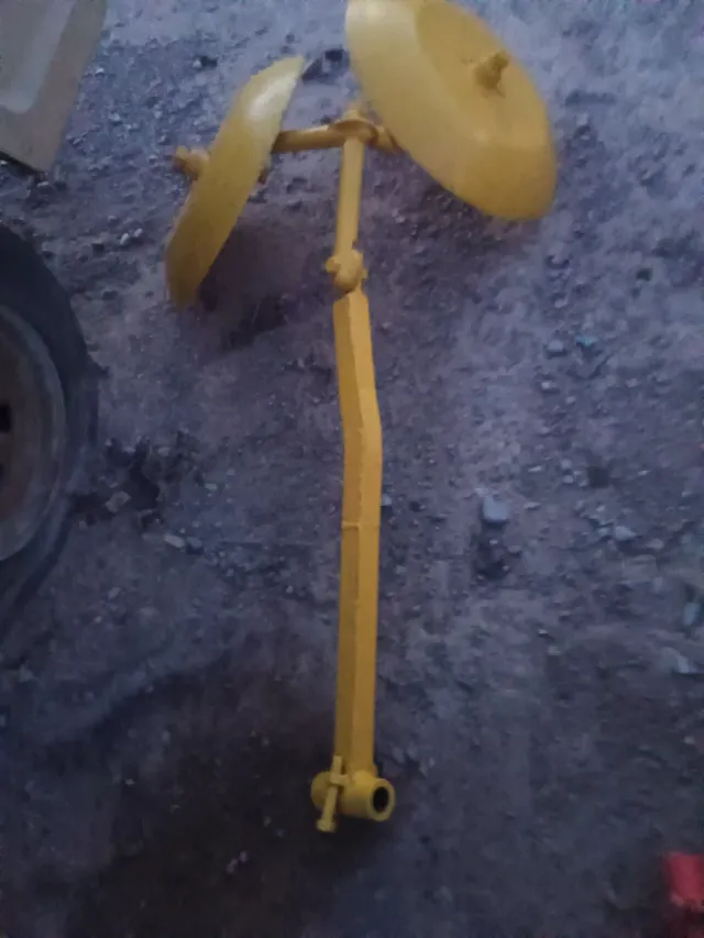 Herramienta agrícola de color amarillo. - Estructura metálica. - Dos discos. - Adaptable a tractor.