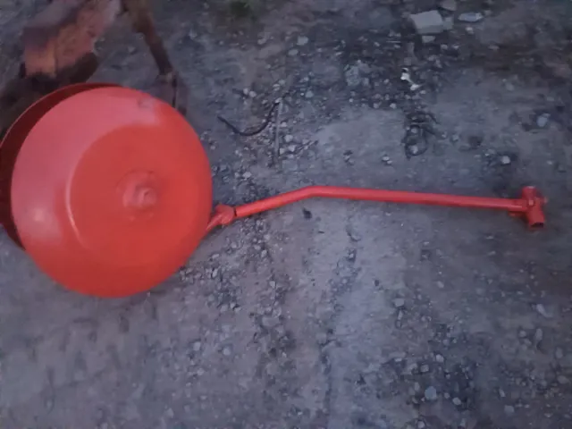 Herramienta agrícola de color naranja, utilizada para caballonar la tierra. - Estructura metálica. - Diseño curvo para facilitar el trabajo.