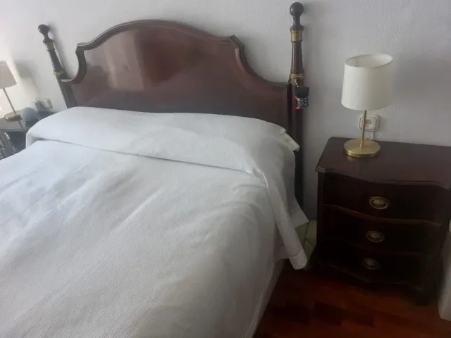 Cabecero y mesitas clasicos de madera noble