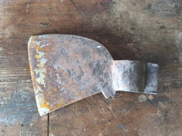 Pieza de metal con forma de cabeza de hacha, presenta signos de óxido y desgaste. - Material: Metal. - Diseño: Forma de hacha. - Acabado: Oxidado.