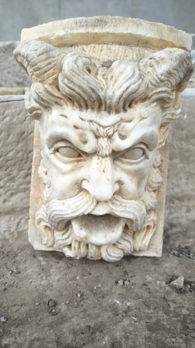 Cabeza de mármol antigua estilo clásico. Fuente