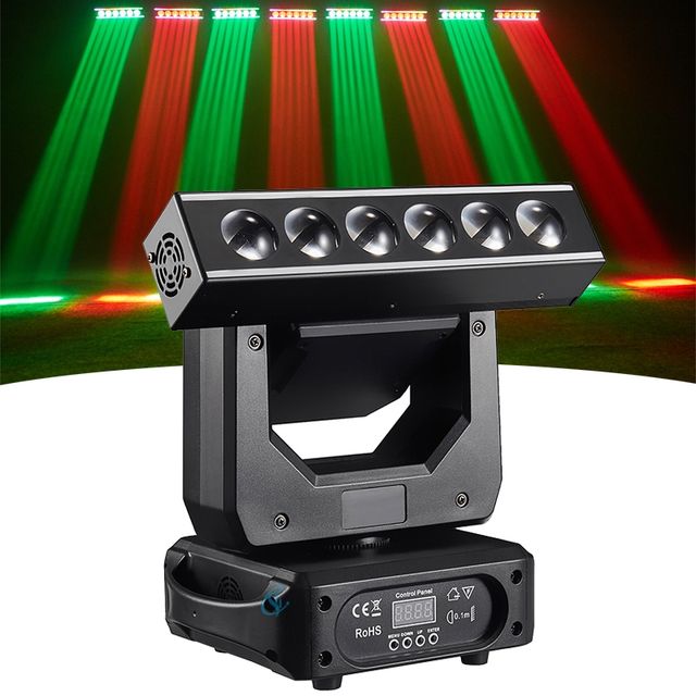 Detalles del productoPotente cabeza móvil con 6 LEDs RGBW de 20W, ideal para eventos y espectáculos. Control por DMX (18/35 canales), automático, ritmo musical y modo maestro/esclavo. Efectos dinámicos: estroboscópico (0-20Hz), atenuación 0-100% y rotación 540° (PAN) / 270° (TILT).