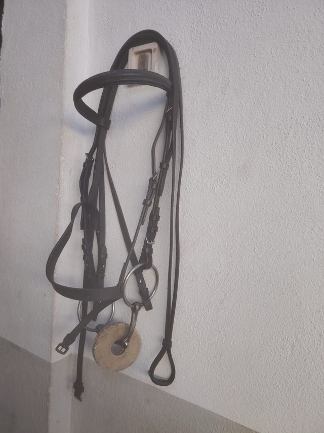 Cabezada completa de cuero para caballo. - Material: Cuero. - Color: Negro. - Incluye filete.