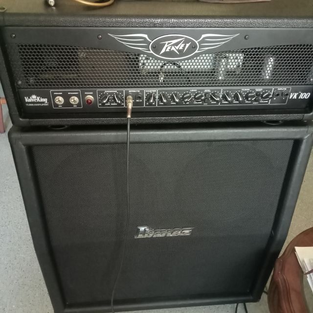 Detalles del productoCabezal de guitarra Peavey valve king 100, prácticamente nuevo siempre en casa, todo a valvulas, un clásico icono del rock, 2 canales clean y lead, con ecualización independiente, dos entradas de guitarra, máster reverb de muelles, loop de efectos, salida conmutable a 4, 8 o 16 ohms. Reciénte revisión de válvulas, funcionamiento perfecto. Suena con un limpio increíble, es atronador cuando satura, sonido Peavey de lo mejor que hay para rock a un precio razonable, prefiero en persona ver y oír, para enviar por cuenta y riesgo del comprador. Pantalla no incluida, con la 4x12, Ibáñez 640 wats por 600eur