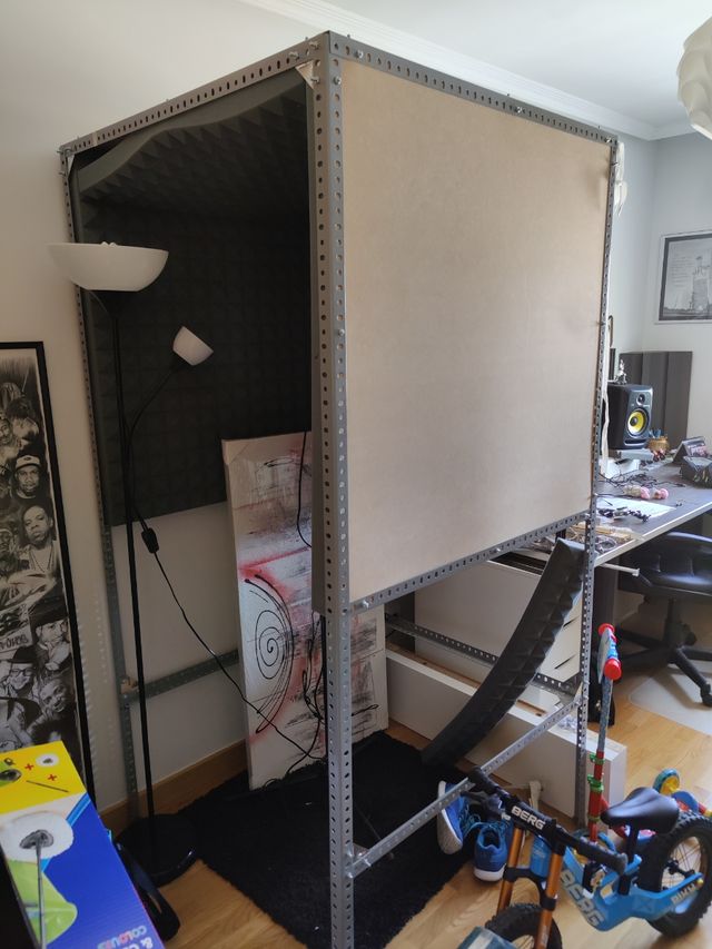 Detalles del productoCabina casera para grabación. Usada en un home studio. Ahora mismo se encuentra desmontada, pero es muy fácil de montar. Se entrega con todas las espumas y tornillería.