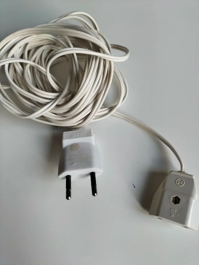 Cable alargador de color blanco con una longitud de 6 metros. Incluye un enchufe y un conector. Posibilidad de entrega en mano en Coruña, Ferrol y Vigo (Vialia).
