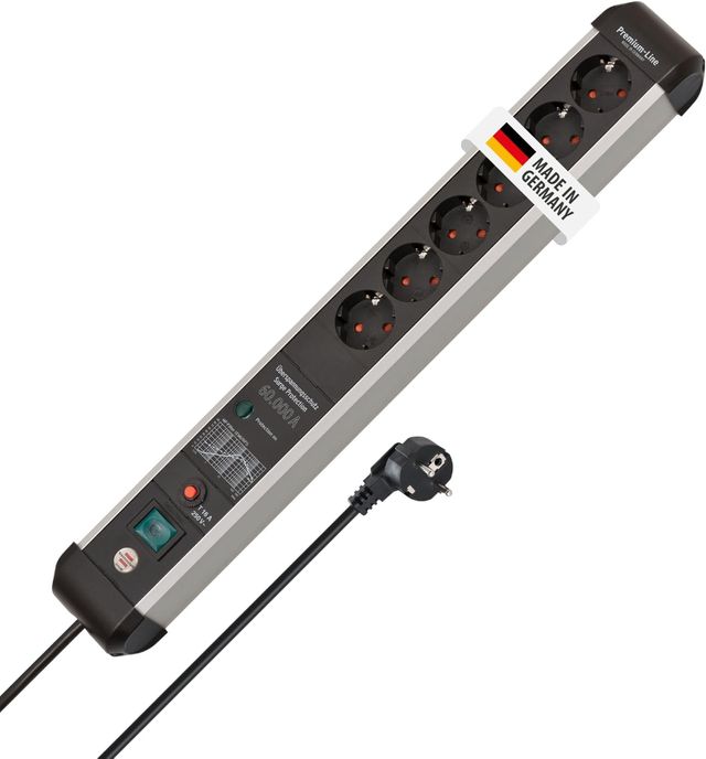 Detalles del productoRegleta de enchufes Brennenstuhl Premium-Protect-Line de 6 tomas con protector contra sobretensiones de 60.000 A (con interruptor y cable de 5 m, fabricada en Alemania), color plateado/negro