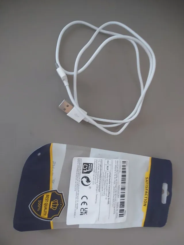 Cable de carga USB con conector de 30 pines, compatible con iPhone 4, 4S y modelos de iPad. - Longitud de 1 metro. - Color blanco.