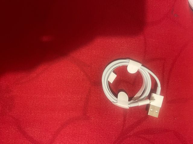 Cable cargador blanco para iPhone. - Conector USB estándar. - Diseño enrollado para fácil almacenamiento.