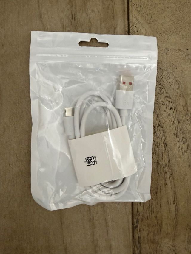 Cable de carga y datos con conector USB tipo C. Es de color blanco y viene en su empaque original. - Conector USB-A a USB-C. - Soporta carga rápida de 6A.