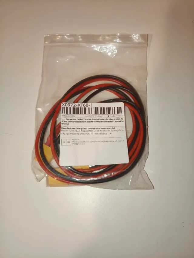 Cable de conexión para batería externa. Compatible con patinetes eléctricos. - Conectores XT60. - Color negro y rojo.
