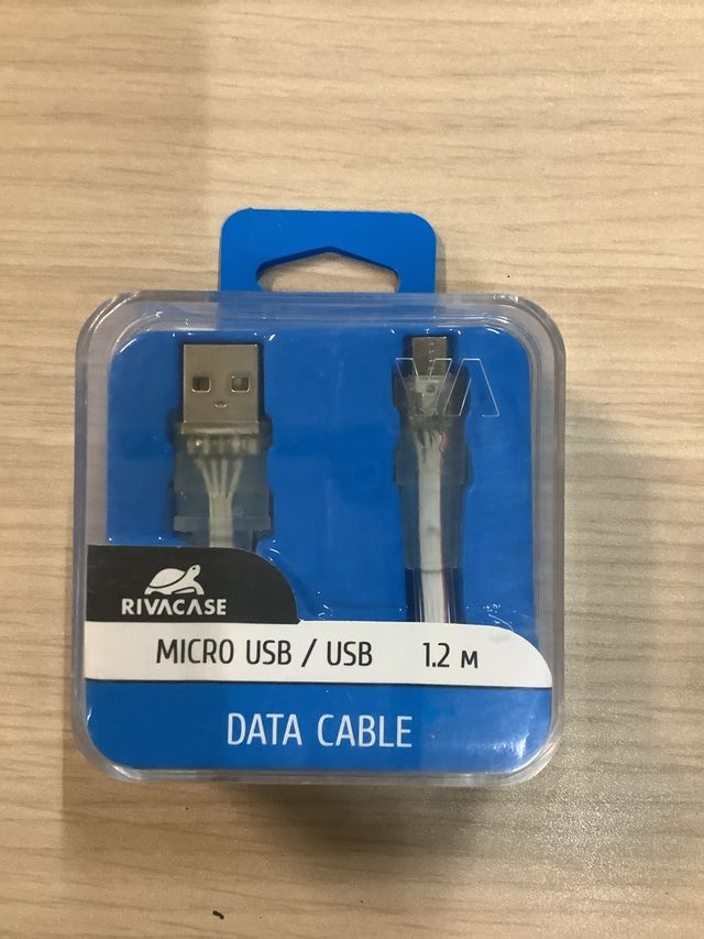 Detalles del productoCable de datos Micro USB a USB de la marca Rivacase. Está prácticamente nuevo, en su embalaje original.