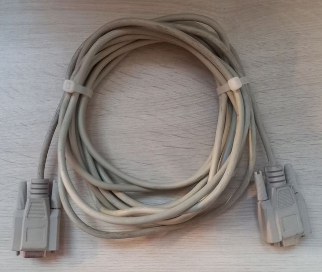 Cable serie DB9 RS232 hembra-hembra - 5 mts - Conectores 9 pines DB9 - Cable en color gris claro.