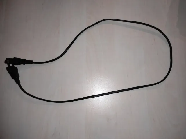 Cable de alimentación de color negro. Sirve para varios dispositivos, como televisores o videoconsolas.