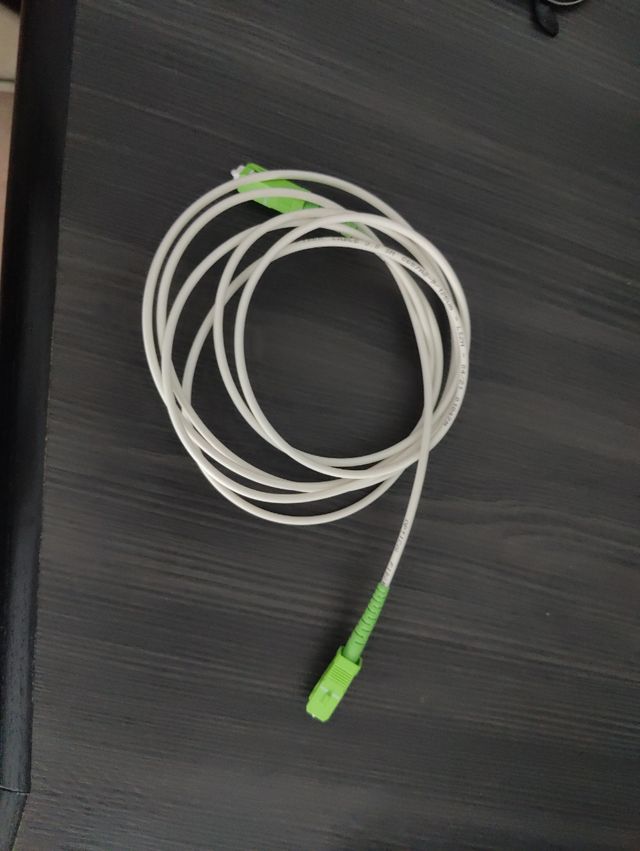 Cable de fibra óptica con conectores verdes. - Color blanco. - Conectores de tipo LC/UPC (verdes).