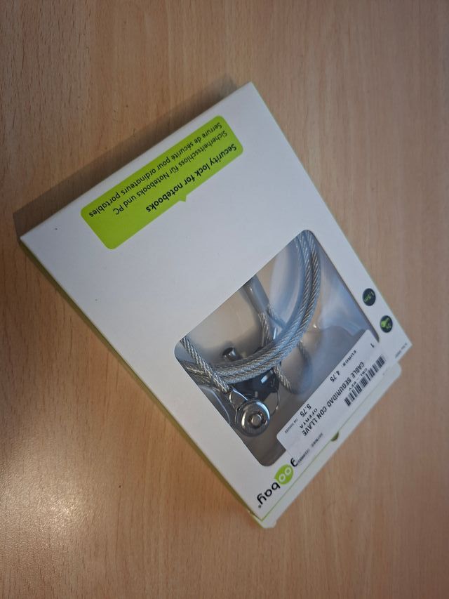 Detalles del productoCable de seguridad con llave para proteger tu portátil. Incluye dos llaves.