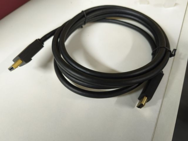 Detalles del productoCable para conectar dispositivos con salida DisplayPort a pantallas con entrada HDMI. El cable es de color negro y tiene conectores dorados.