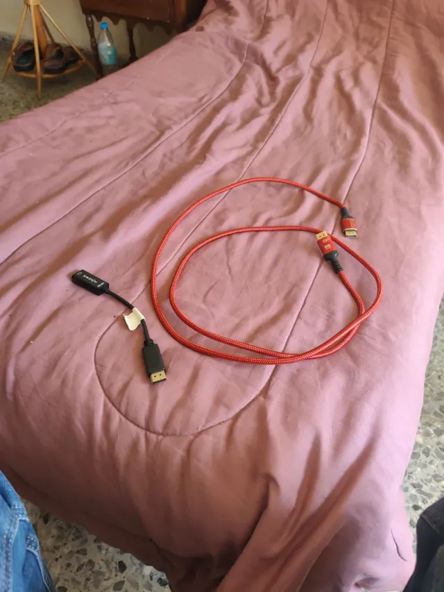 Cable de conexión DisplayPort y un adaptador display port macho ,HDMI hembra - Color rojo. - Conector DisplayPort a conector HDMI.