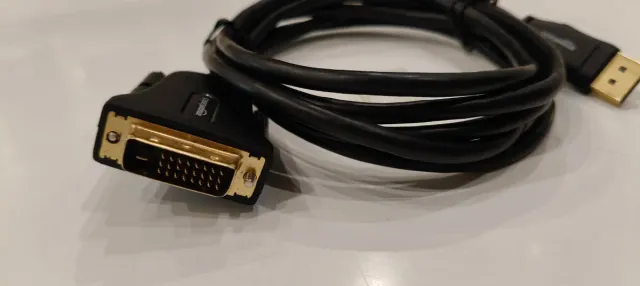 Detalles del productoCable de conexión DVI a HDMI de Amazon Basics. Permite conectar dispositivos con puertos DVI a pantallas con entrada HDMI.