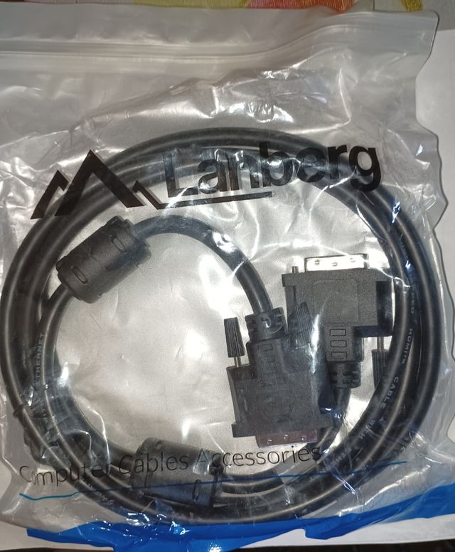 Detalles del productoCable DVI-D macho a DVI-D macho de Lanberg, de 1.8 metros de longitud. El cable se ve en perfecto estado.