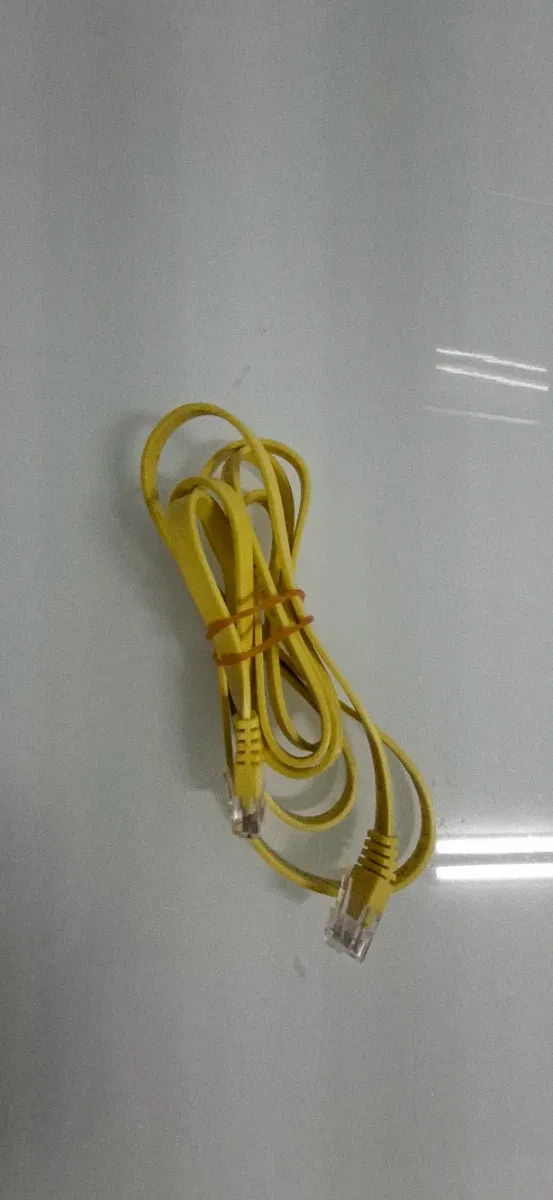 Cable de red Ethernet de color amarillo. Tiene una longitud de 1,5 metros. - Conectores RJ45 en ambos extremos. - Ideal para conexiones de red.