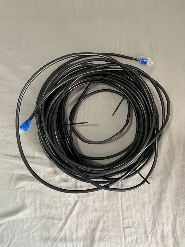 Detalles del productoCable de red Ethernet CAT6 con conectores RJ45, diseñado para uso en exteriores.