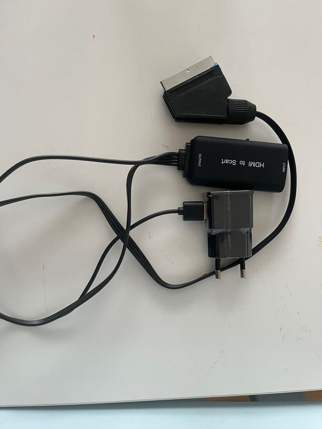 nuevo, comprado para tele sin HDMI, para poder usar la play. covertidor HDMI a euroconector, ideal para teles sin hdmi. con alimentador. urge venta
