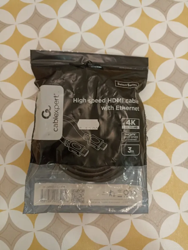 Cable HDMI de alta velocidad con Ethernet, ideal para conectar tus dispositivos. - Longitud de 3 metros. - Soporta resolución 4K. - Serie Select.