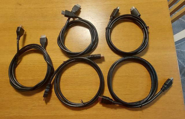 Detalles del producto6 Cables Ethernet Cat.5e, 4 de ellos de 1,5 metros y 2 de 5 metros.2 Cables Ethernet Cat.6 , 1 de 2 metros y 1 de 1,50 metros. 5 Cables HDMI High Speed ,4 de ellos de 1,50 metros y 1 de 2 metros. 8 Metros de Cable Ethernet UTP Cat.6 Mod.49 121.F sin terminales, ideal para instalaciones en pared.Todos nuevos,nunca utilizados.