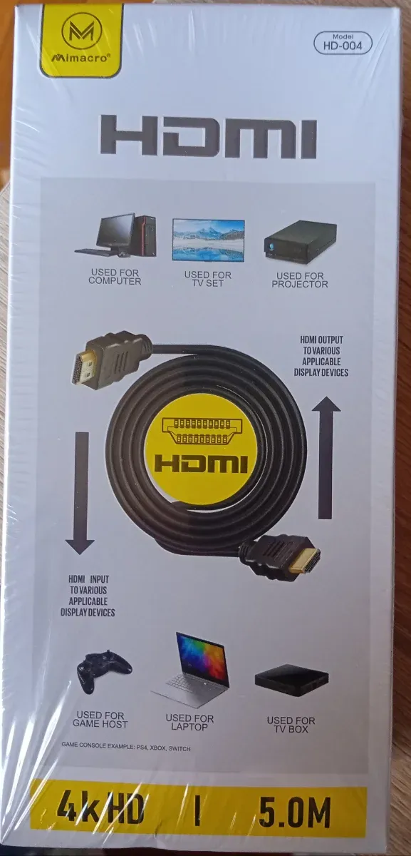 Detalles del productoCable HDMI de alta velocidad de 5.0 metros, compatible con resolución 4K HD. Ideal para conectar ordenadores, televisores, proyectores, consolas de videojuegos y otros dispositivos.