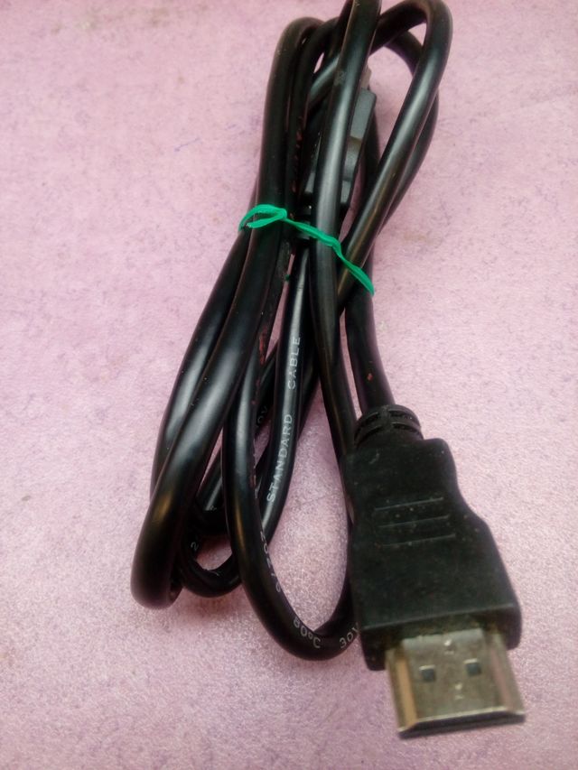 Cable HDMI en color negro, ideal para conectar dispositivos. - Conector HDMI estándar. - Cable de 30V.