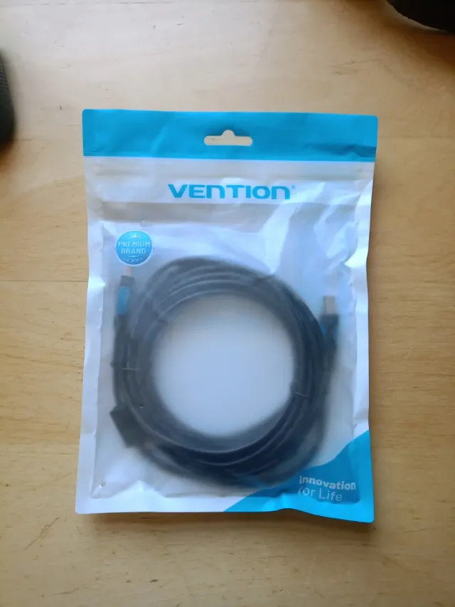 Detalles del productoCable de conexión Vention de 5 metros de longitud. Diseñado para conectar impresoras u otros dispositivos con puerto USB B a un ordenador con puerto USB A.
