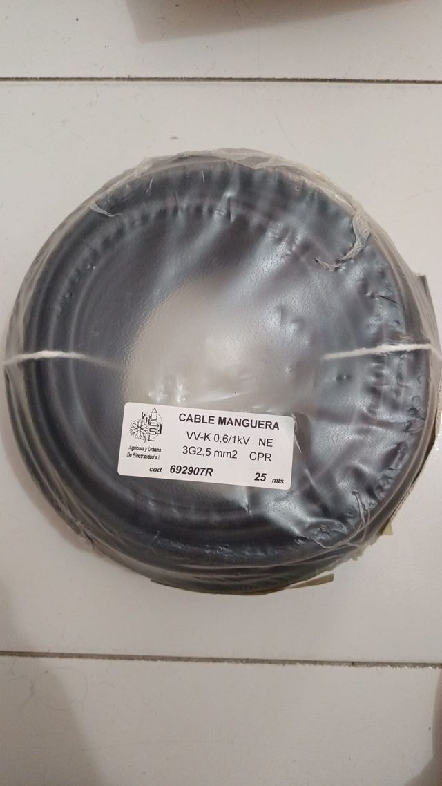 Detalles del productoVendo rollo de cable manguera eléctrico VIA16 1KV 3G2.5 CPR, de 25 metros, nuevos y sin usar.