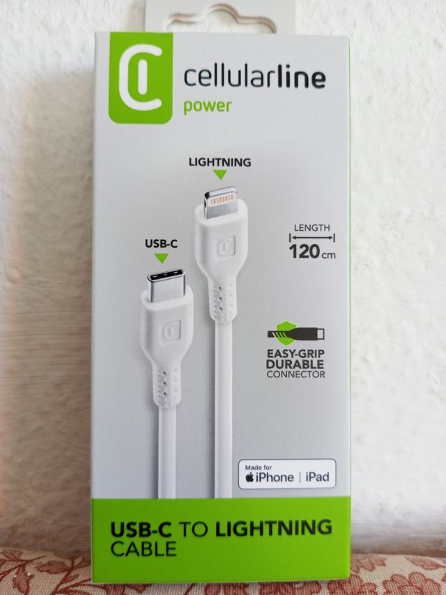 -1 metro de largo. -Marca: Cellularline -Larga duración -Puntas iPhone/iPad y Tipo C. -Nuevos de paquete.