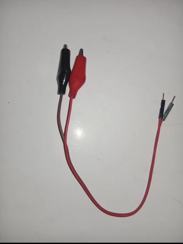 - Dos pinzas de cocodrilo (roja y negra).