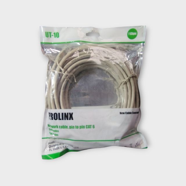 Detalles del productoCable de red Prolinx UT-10, categoría CAT 6, con conectores pin a pin. Ideal para conexiones de red de alta velocidad.