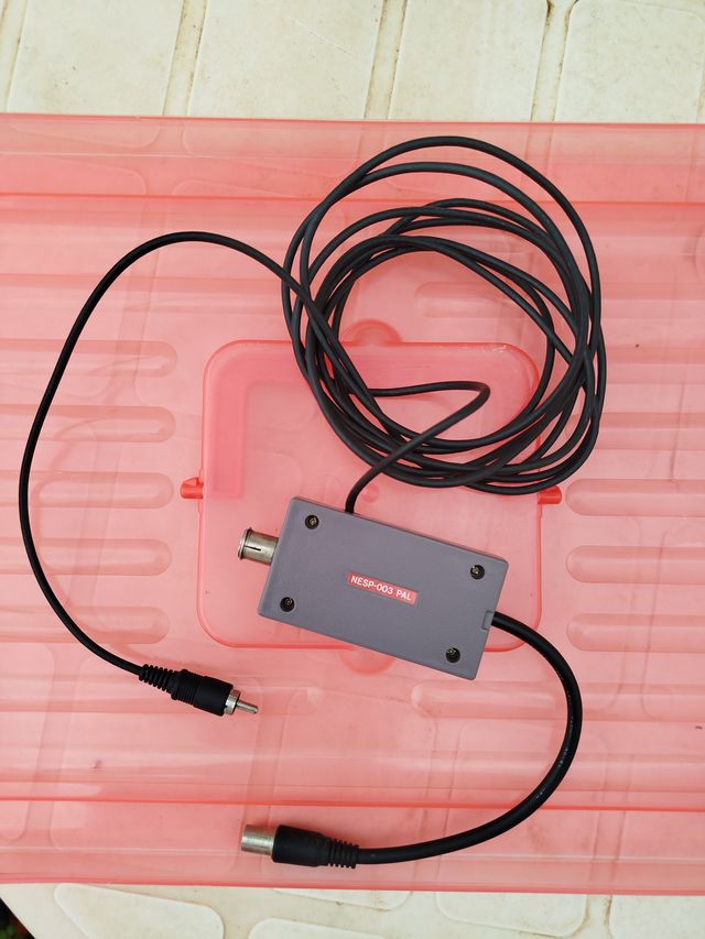 Cable RF original para Nintendo Super Nintendo modelo PAL. Permite conectar la consola a televisores antiguos. - Conector RF. - Conector AV.