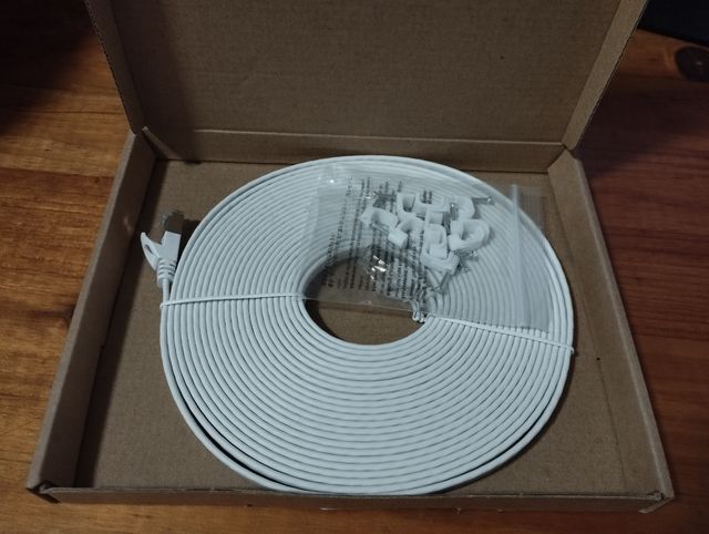 Detalles del productoCable de conexión a la red Gigabit Ethernet, categoria 7 plano, incluye 10 grapas. 25 Pies,7.6metros.Color blanco.