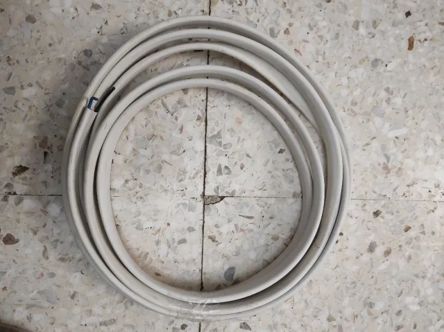 Detalles del productoCable triplanar de cobre con tres conductores de 1.5 mm² de sección y una longitud total de 5 metros. El recubrimiento exterior es de color blanco.
