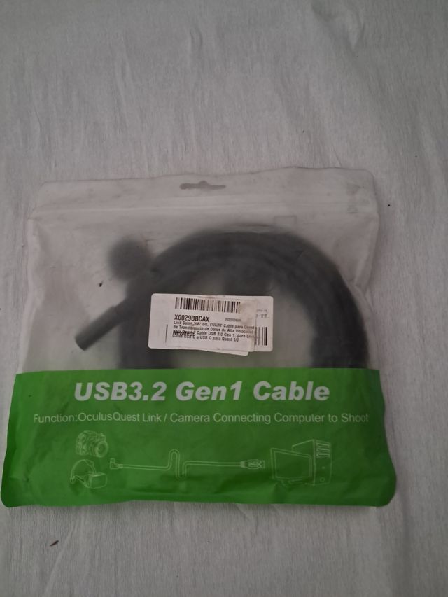 Cable USB 3.2 Gen 1 para conectar Oculus Quest a PC. Diseño de codo, permite carga y uso simultáneo. Transmisión rápida y sin retrasos. 5M.Nuevo