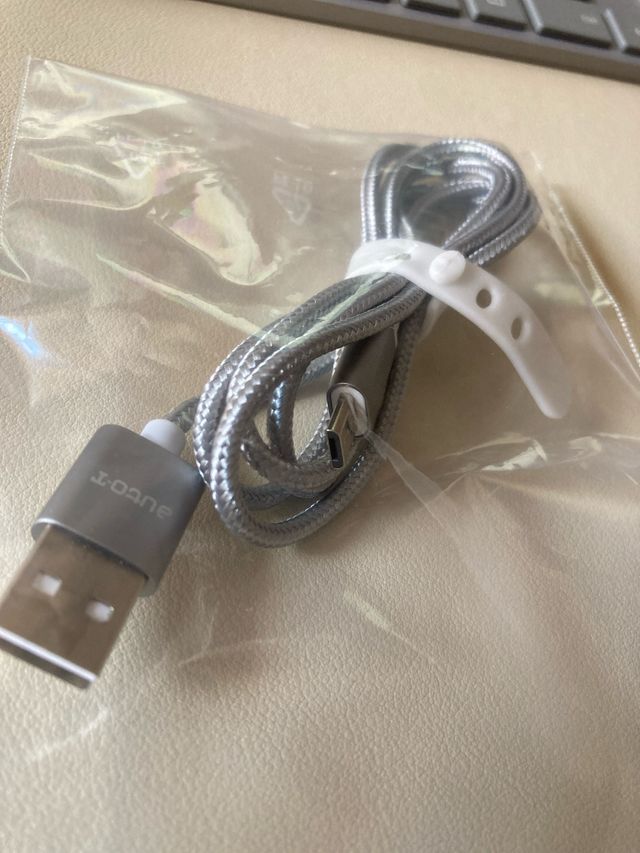 Cable USB a Micro USB de la marca AUTO-T, en color gris. SIN ESTRENAR. - Conector USB estándar. - Conector Micro USB. - Cable trenzado.