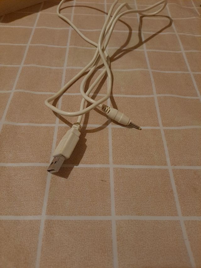Cable USB a Mini USB blanco en buen estado. - Conector USB A macho. - Conector Mini USB macho. - Cable de color blanco.